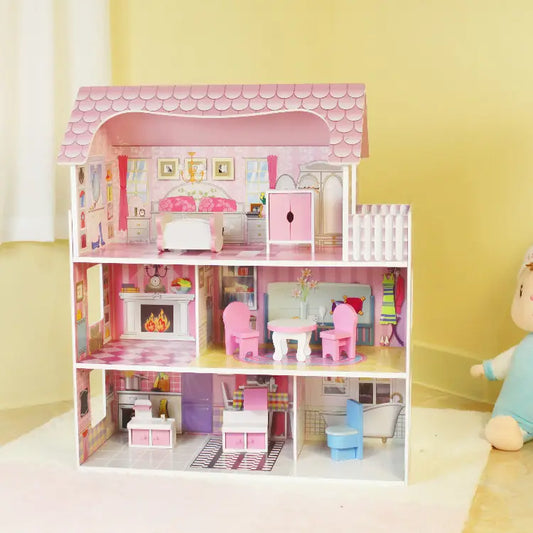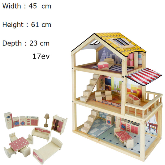 wooden doll house villa pretend to play
