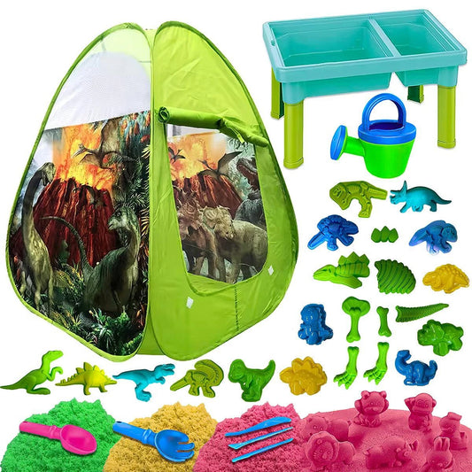 dinosaur tent and beach table
