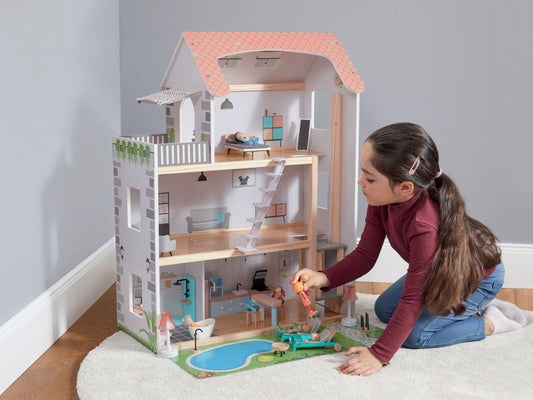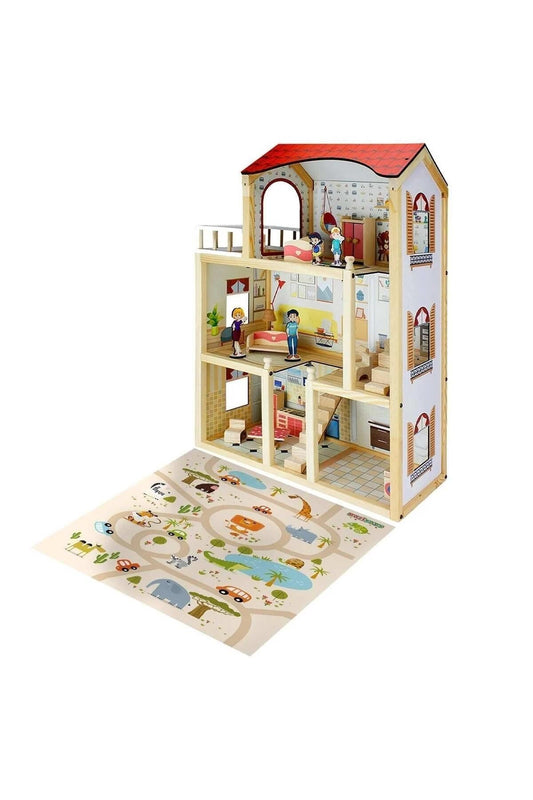 Pretend Toy Kids Wooden Doll Villa with Doll Room Furniture dollhouse