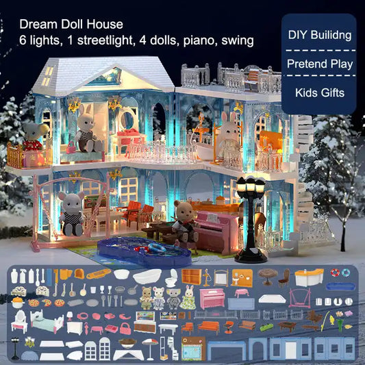 Miniature Furnitures House Model Children Crystal Palace Building Princess Castle Doll House Play Set for Kids Girls