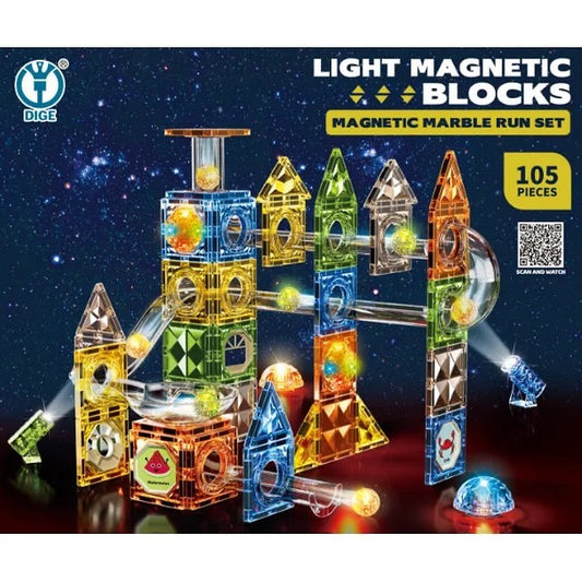 Light Magnetic Blocks - Magnetic Marble Run Set Dinosaur Theme