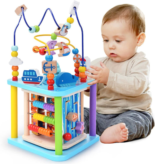 7 in 1 Wooden Activity Cube Baby Walker for Toddlers Educational Learning Toy
