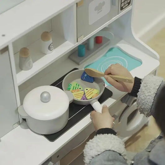 Grey or White Modern – Children's Kitchen with Accessories, Wooden Kitchen Toy for Children