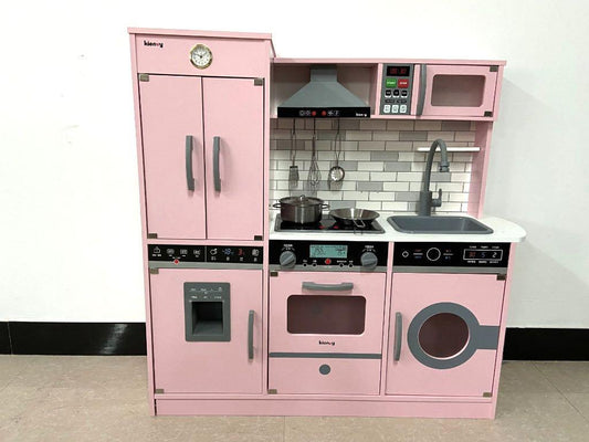 Wooden Pink Kitchen Toy Set Children's Cooking Stove Boy And Girl Simulation