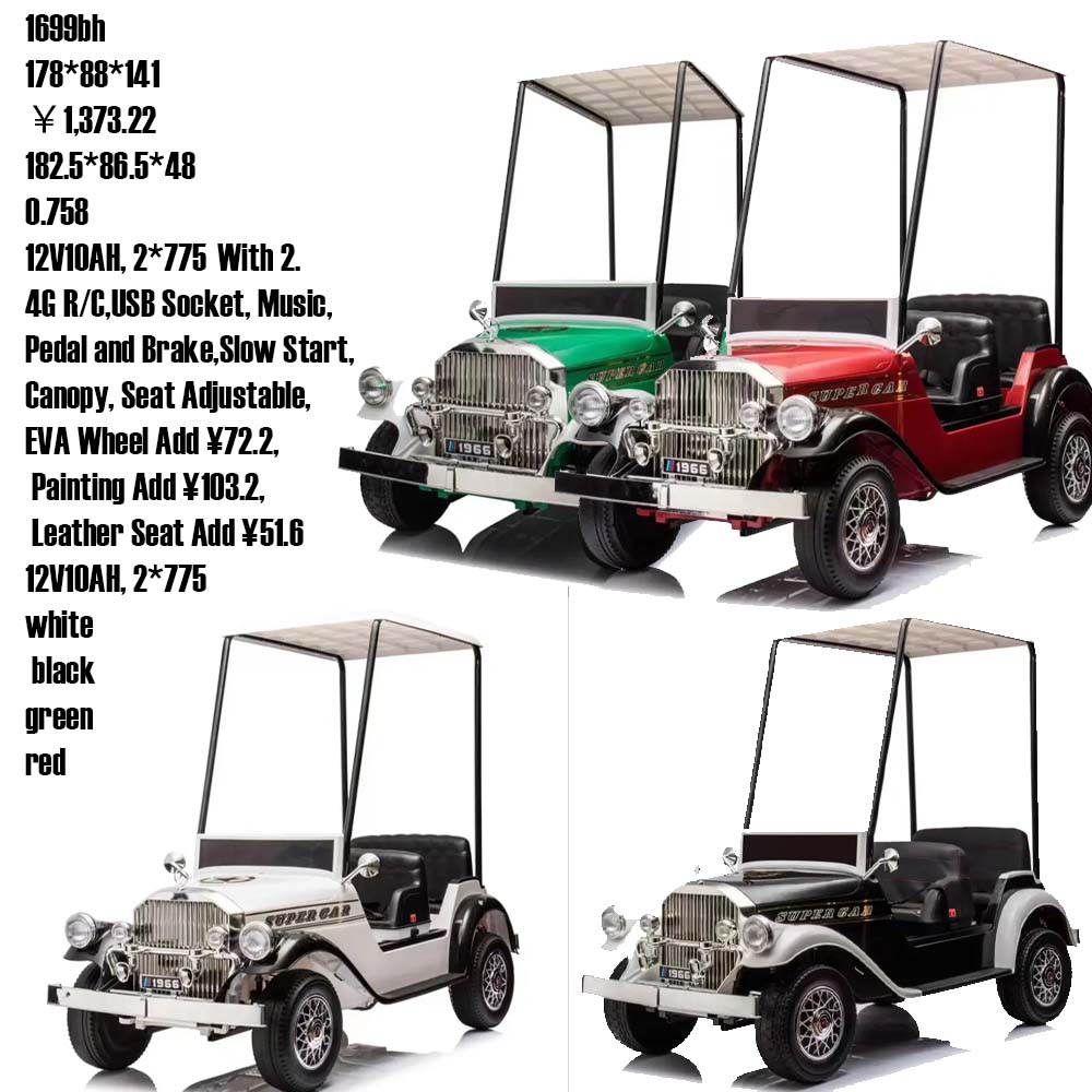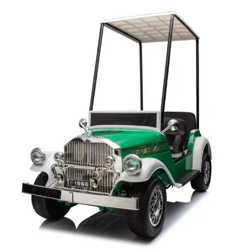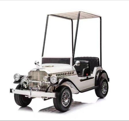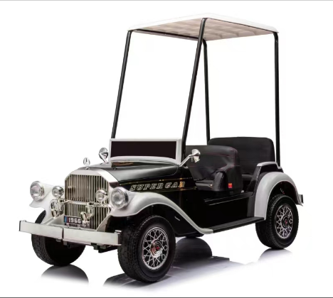 Classic Vintage-style electric ride-on car for children, available in white, black, green, and red.