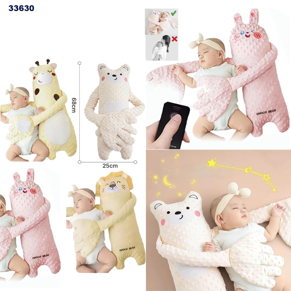A plush sleep aid designed to help babies feel safe and sleep more soundly. This innovative product mimics a mother's soothing touch with its gentle, rhythmic patting motion, aiming to alleviate anxiety and prevent startle reflexes in newborns.