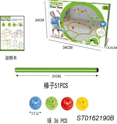 STEM fort-building kit with 51 rods and 36 balls to build dens and structures.