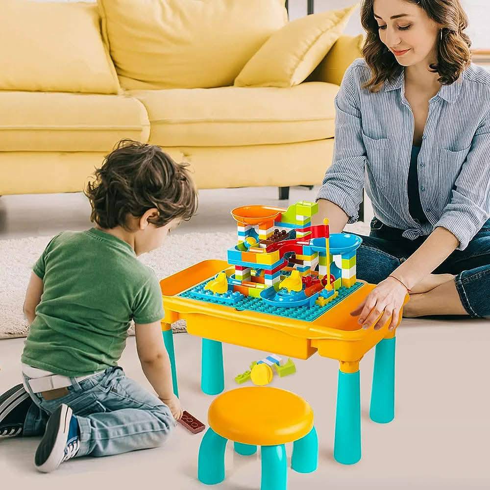 Interactive block table featuring a ball run and multiple play modes. Ideal for creative building and fine motor development.