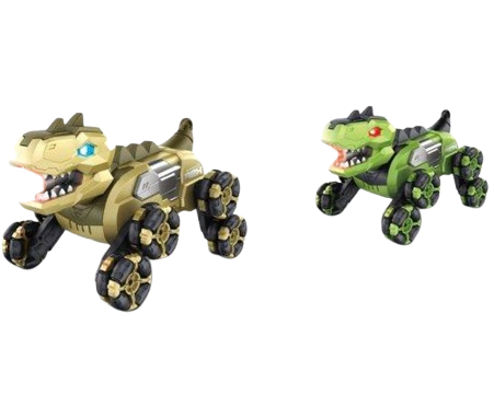 Dragon-style RC stunt vehicle with flame spray effect, rotating wheels, LED lights, and powerful monster climbing motion.