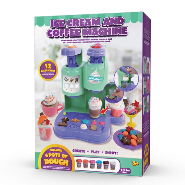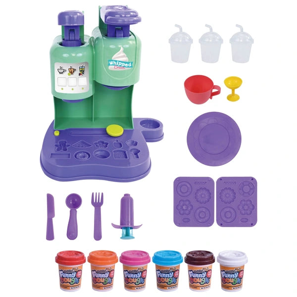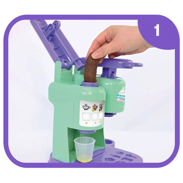 Interactive dough machine allowing kids to create pretend coffee, ice cream, and desserts.