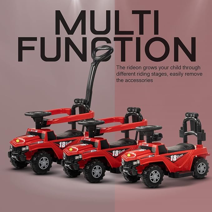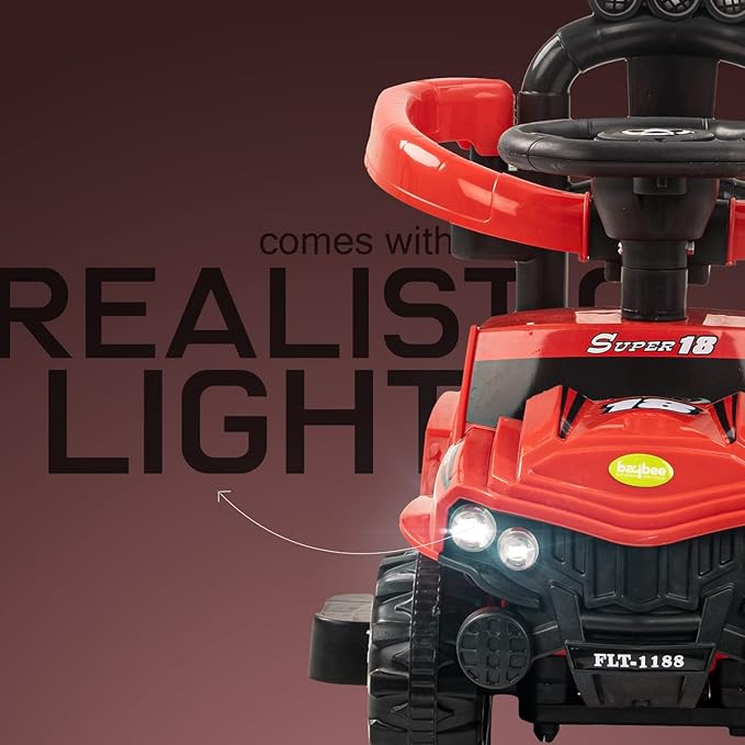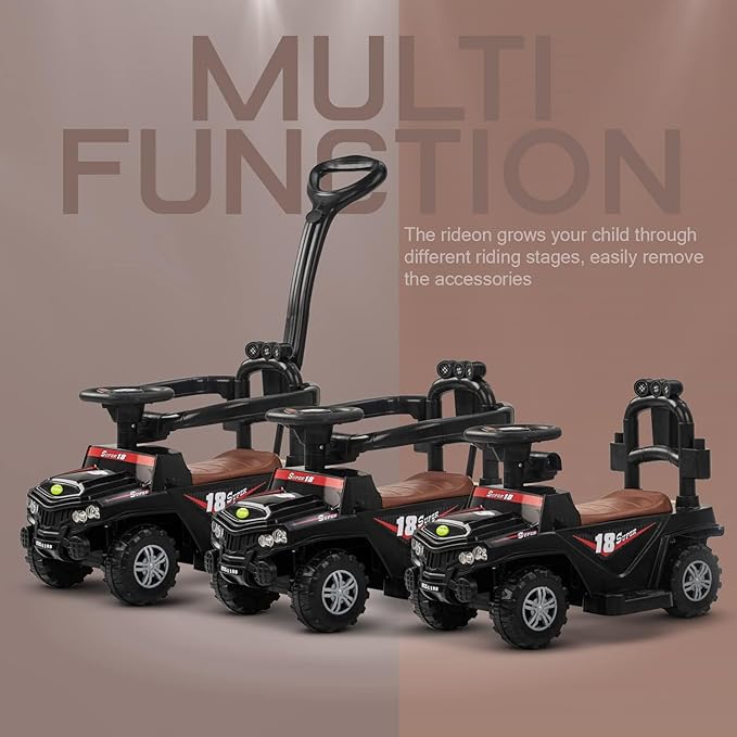 - 🚗Push Ride on Car - The baby Ride on car is designed to look like a real jeep design and Your baby can play this ride on toy car by push mode and controls with the help of steering wheel or parents can push the car with the help of parent control rod