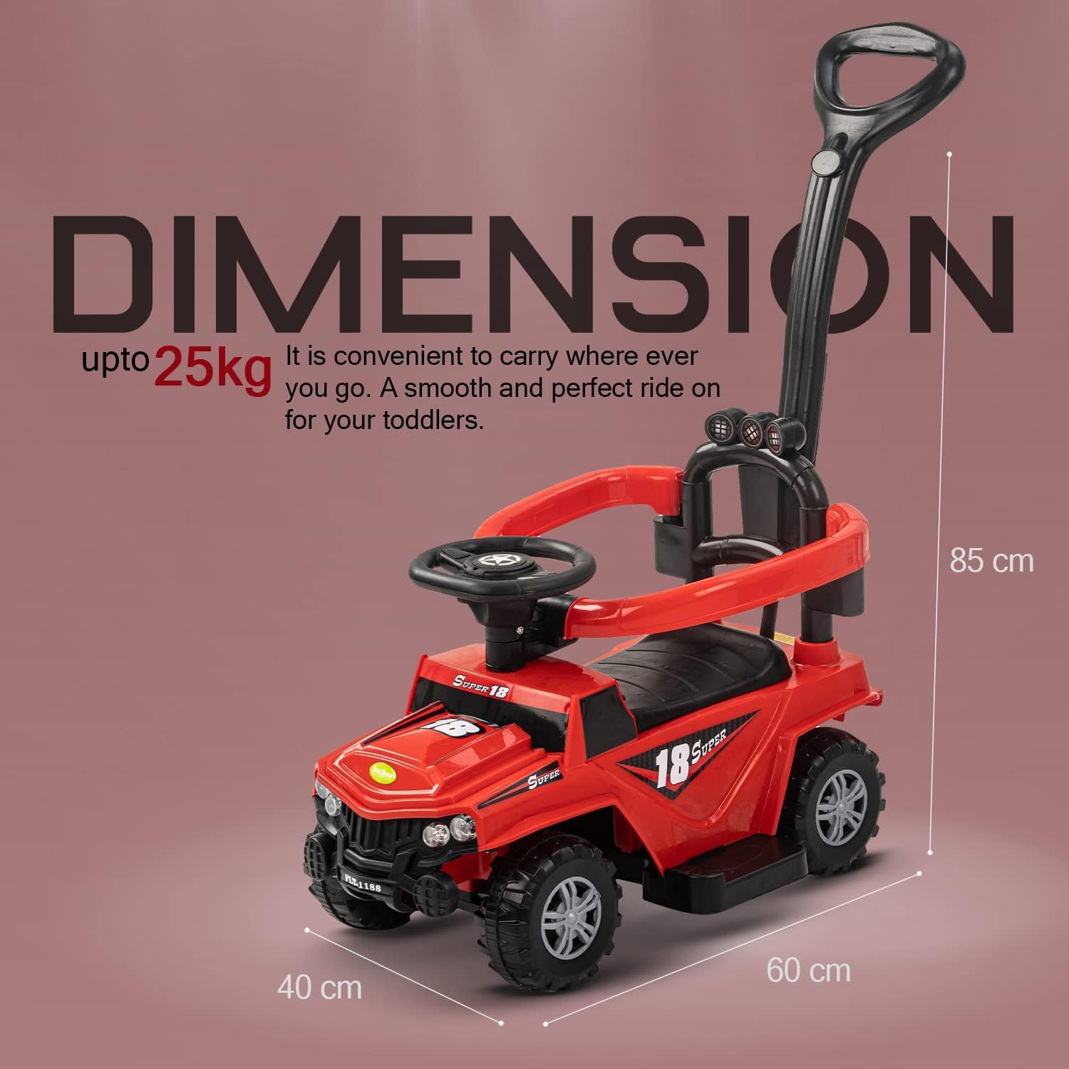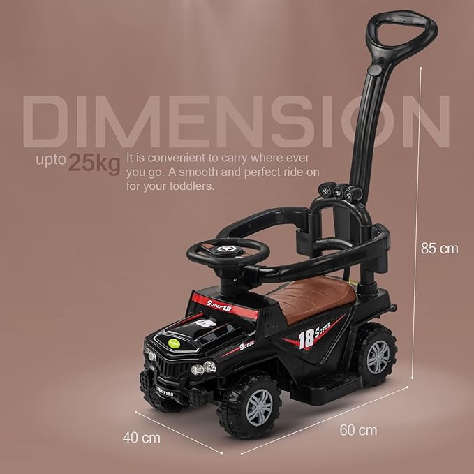 - 🚗Perfect for Toddlers: Our push ride-on car can handle weight maximum up to 10-15 kg and is ideal for 1 year to 3 year old toddlers. It is convenient to carry where ever you go. A smooth and perfect ride on for your toddlers. Designed for utmost comfort of the baby with optimum height and round edges so as not to cause any injury to the kid