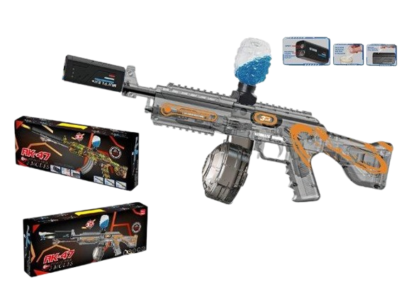56cm AK-47 gel rifle with 3-in-1 water spray firing system and large drum magazine.